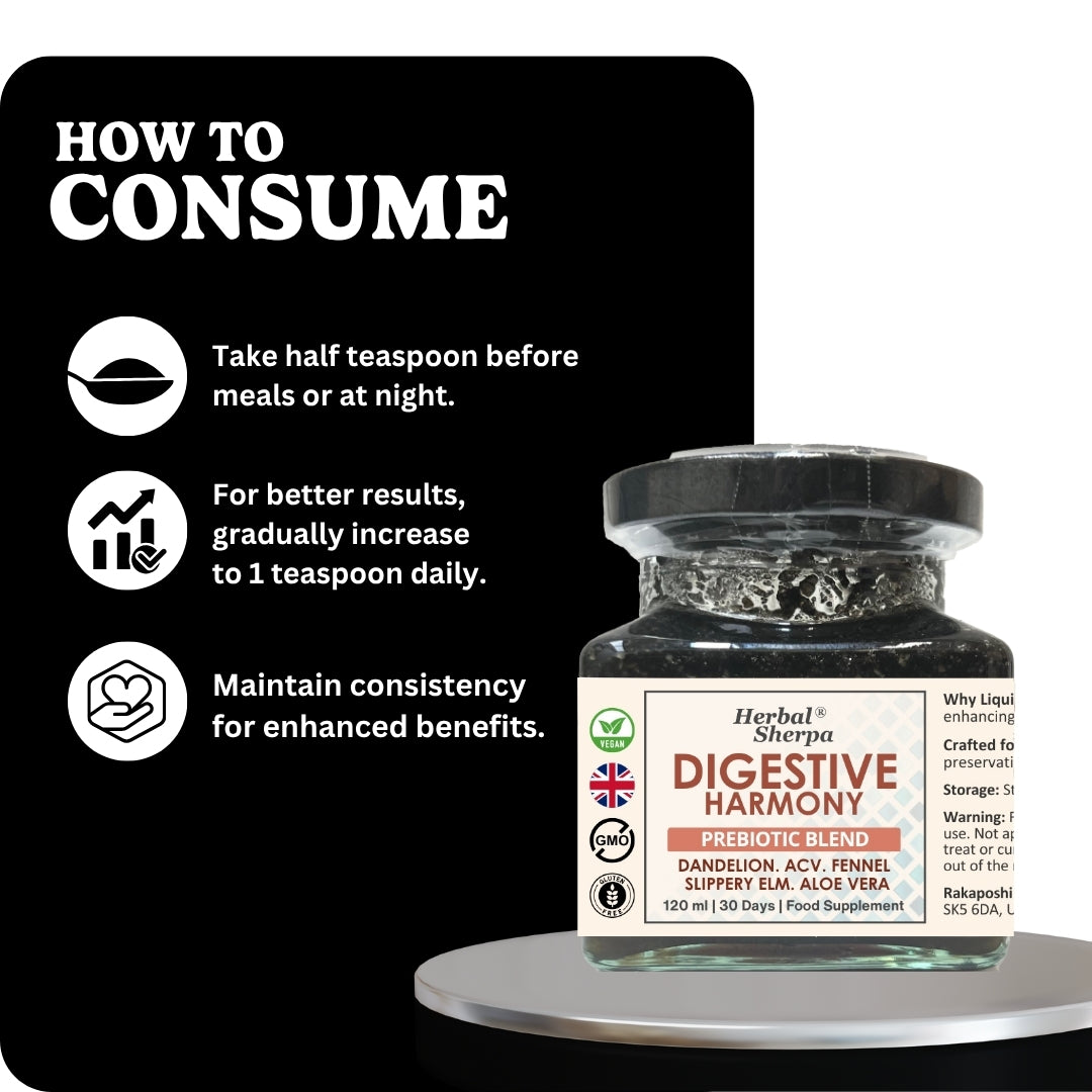 Supporting comfortable daily digestion and overall wellness starts with the right nutrients. Herbal Sherpa Fibre-Focused Liquid Formula is a premium, plant-based liquid blend crafted in the UK to easily fit into your everyday routine.