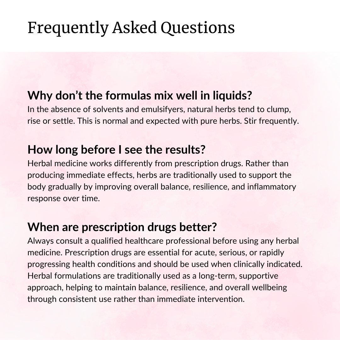 This blend is designed as part of a balanced daily routine, combining botanical ingredients with essential nutrients to support overall wellbeing, energy and nutritional intake during midlife.